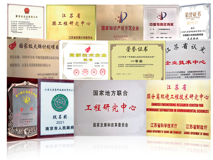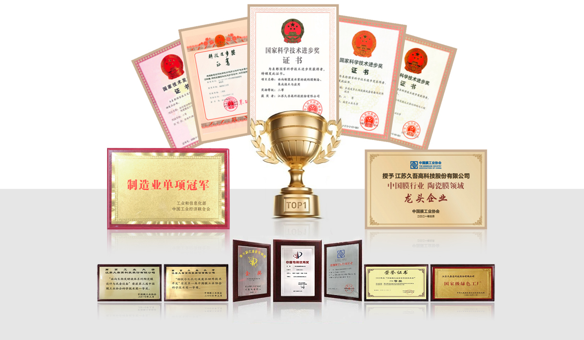 公司先后获得四次国家科技进步奖、一次国家技术发明奖公司陶瓷滤膜产品及成套装备
